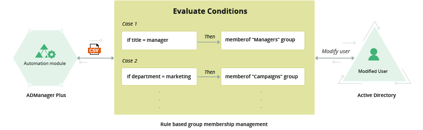 ADManager Plusの自動化機能は組織のActive Directory活用を一新します。 例えば、ADManager Plusの自動化機能は、単調な/繰り返しの、Active Directory重要タスクを実行する機能(管理自動化)を備えています。