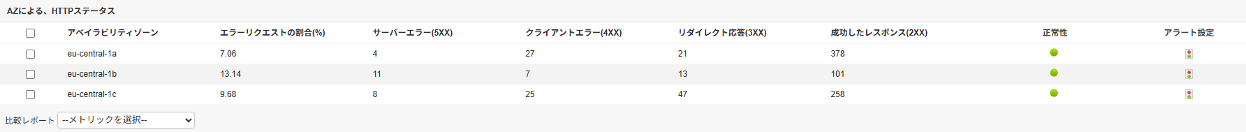 AZ(アベイラビリティーゾーン)単位のステータスコード監視による影響範囲の特定: