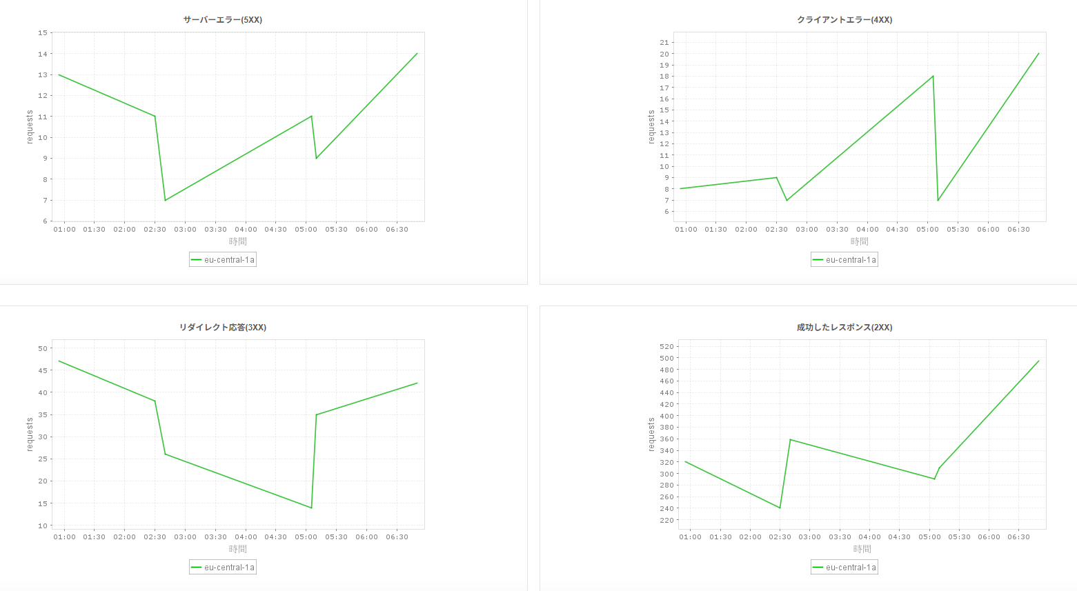 サーバーエラー(5XX)、クライアントエラー(4XX)、リダイレクト(3XX)、成功レスポンス(2XX)といったすべてのHTTPステータスコードをAZ別に追跡します。これにより、特定のゾーンにおける問題を正確に特定し、トラフィックの隔離や連鎖的な障害の防止、およびAWSリージョン全体での高可用性とレジリエンス(回復力)の確保を実現します。