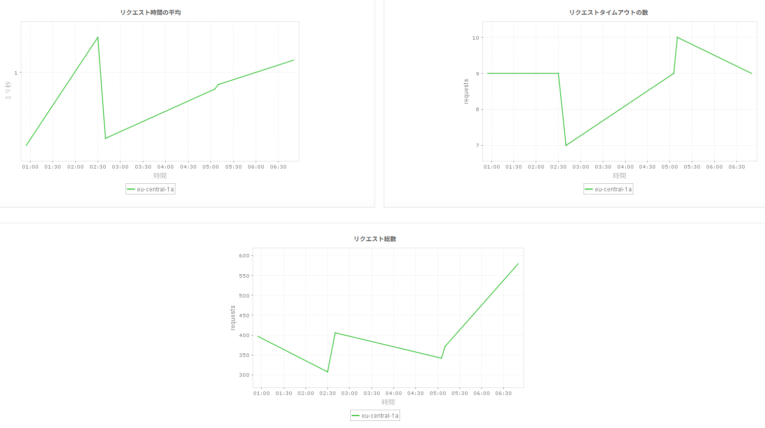 AZごとのリクエストメトリクス(平均リクエスト時間およびタイムアウト)を分析し、アプリケーションのパフォーマンスを直接的に把握します。これらの指標を監視することで、ボトルネックの特定やサービスの応答性の検証が可能になり、サービス過負荷を防ぐためのスケーリングや負荷分散の意思決定を強力にサポートします。