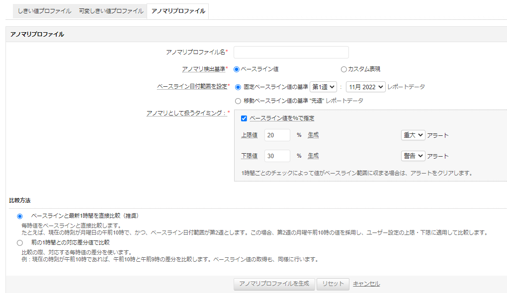- アノマリプロファイルの詳細を設定(ベースライン値)