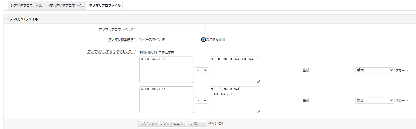 - アノマリプロファイルの詳細を設定(カスタム表現)