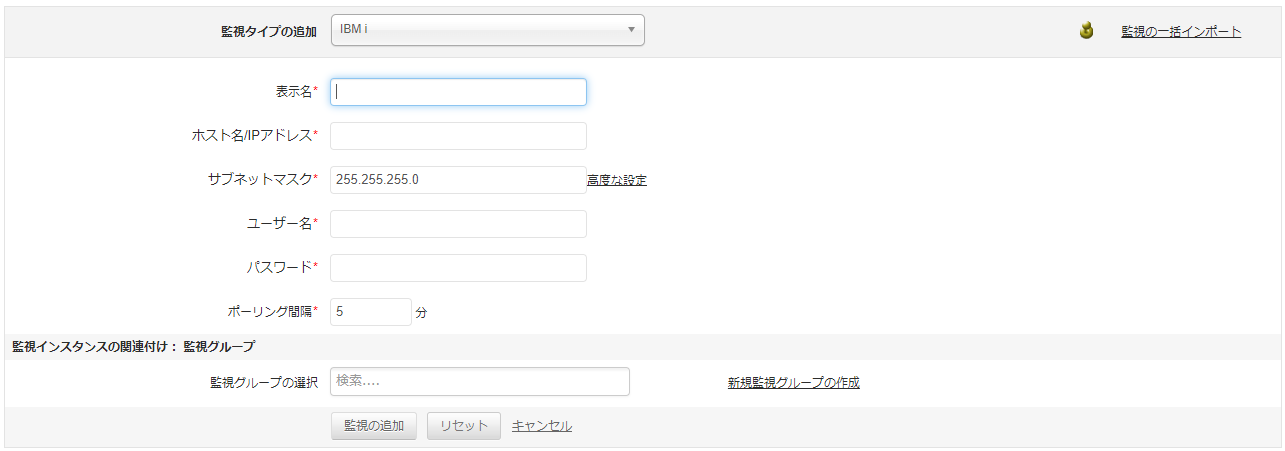 - コンボボックスから、関連付ける監視グループを選択します(任意項目)。1つの監視は複数グループに関連付け可能です。