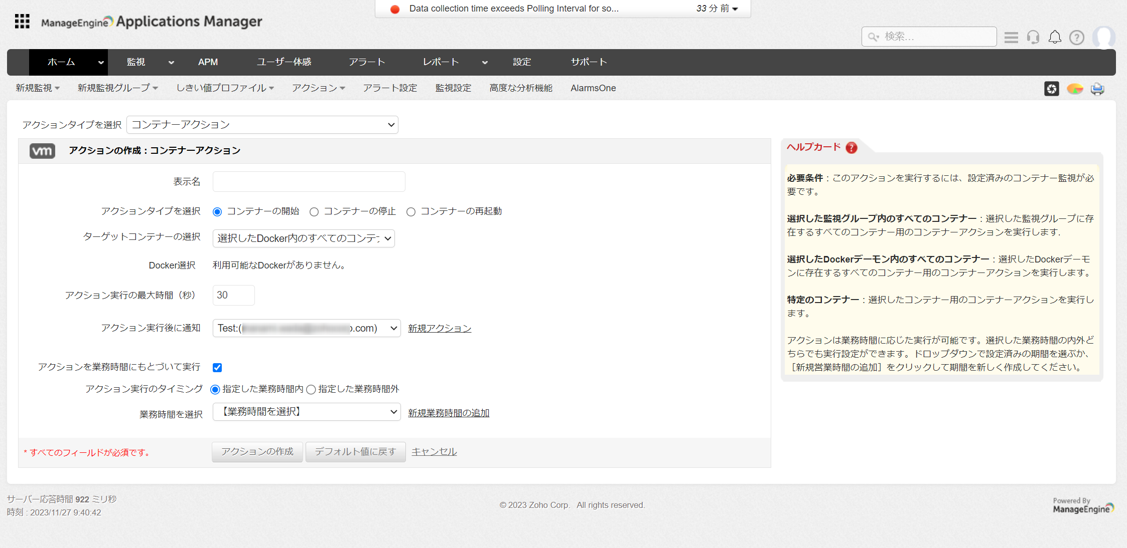 本アクションでは、コンテナー監視においてアラート発生時にDockerコンテナーを起動、停止、再起動するために使用します。