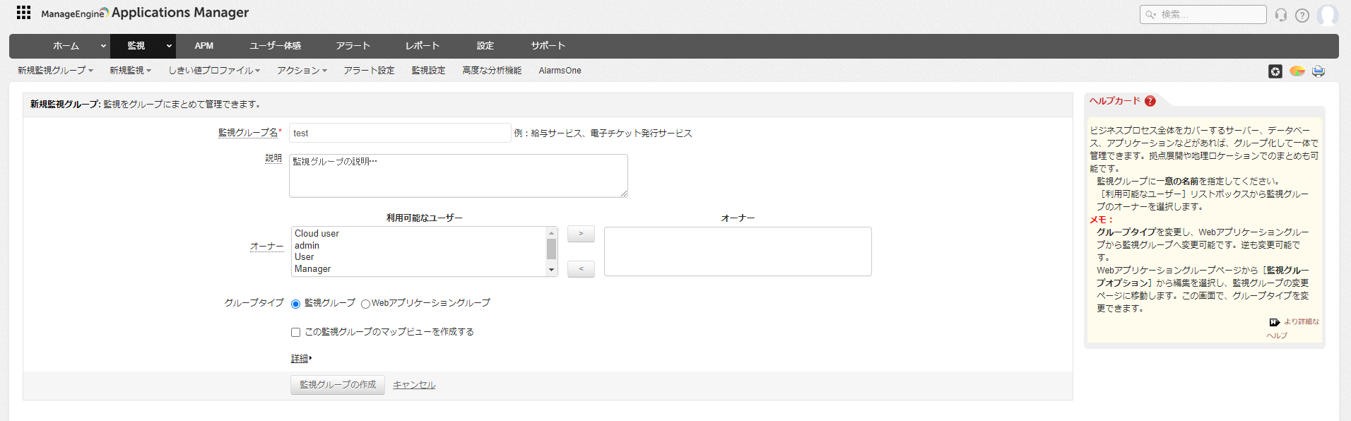 以下の手順で監視グループを作成します。