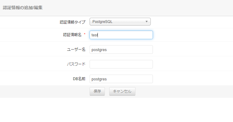 別ウィンドウで、[認証情報の追加/編集]画面が表示されます。