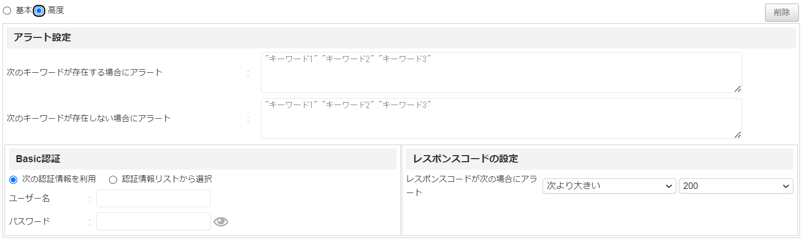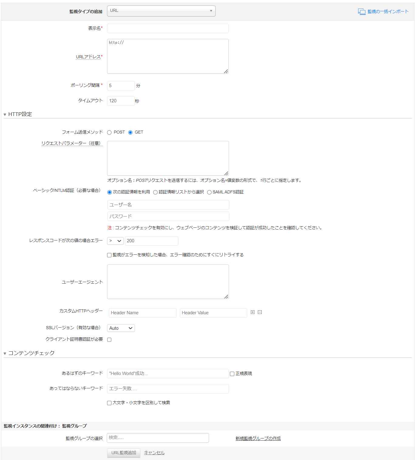 HTTP設定:詳細オプションを利用して、より柔軟にURL監視を行うオプション項目(任意)