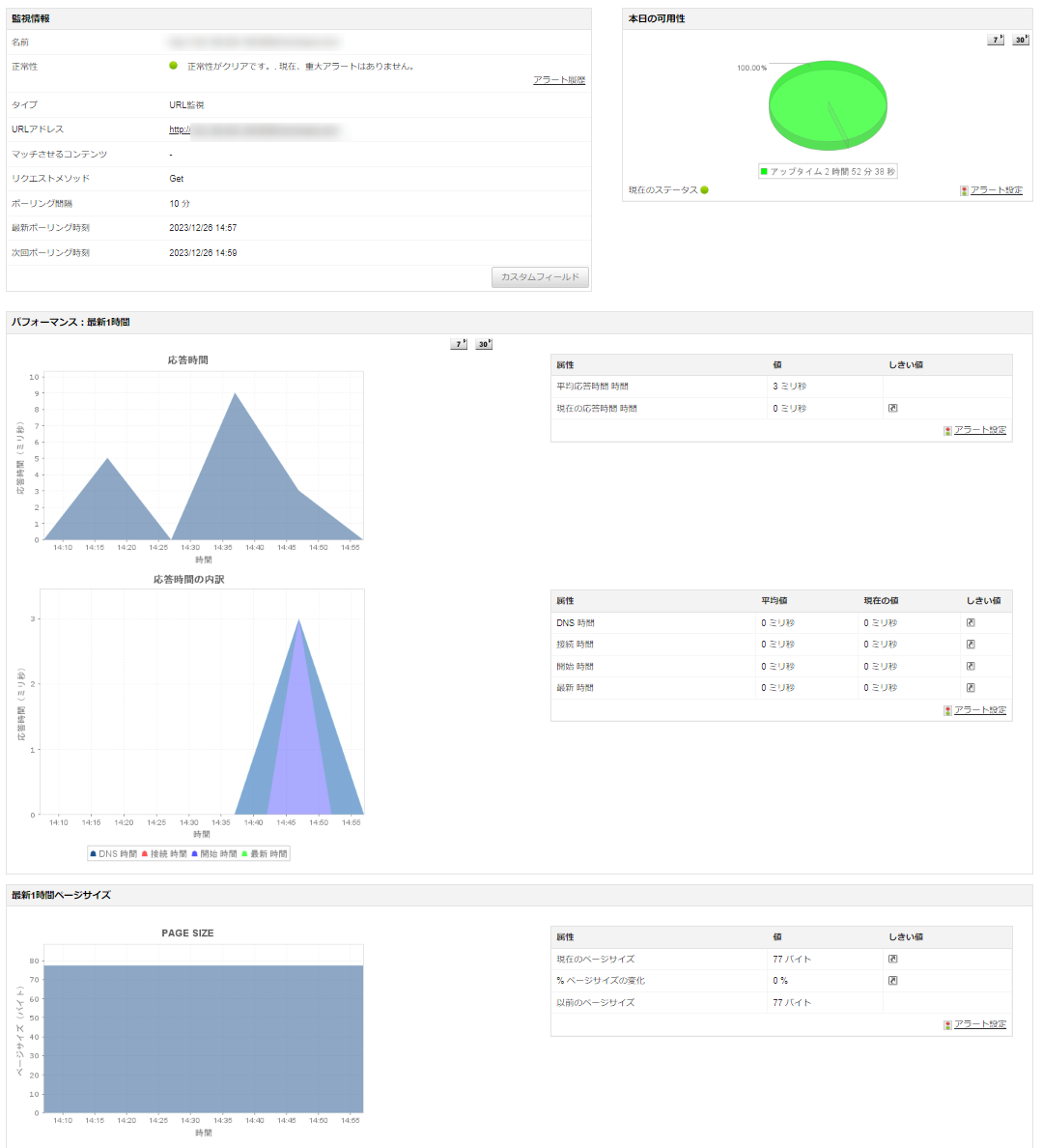 | 現在の応答時間 | URLにアクセスする際の応答時間を示します。 |