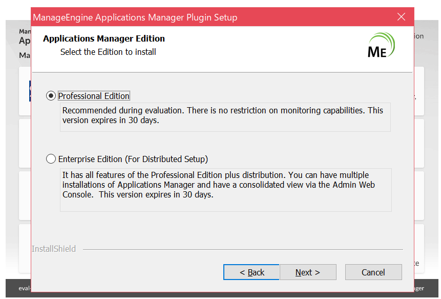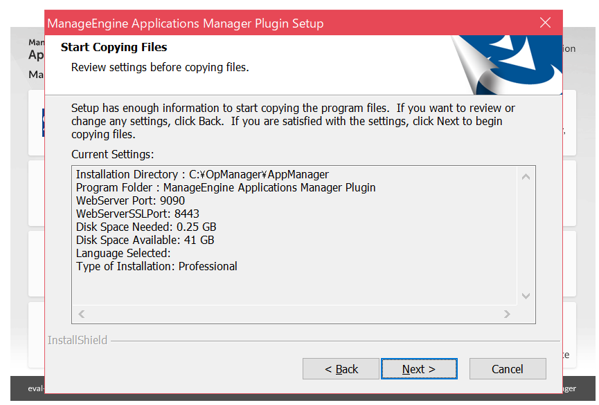 APMプラグインを評価する際は、OpManagerのインストールも必要となります。 - 次章のインストーラーをご参照いただき、先にOpManagerをインストールしてください。