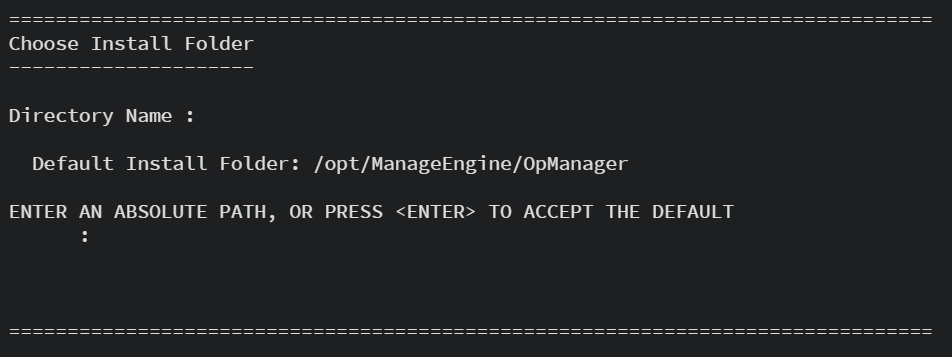 - インストールディレクトリパスを指定(デフォルト:/opt/ManageEngine/OpManager)