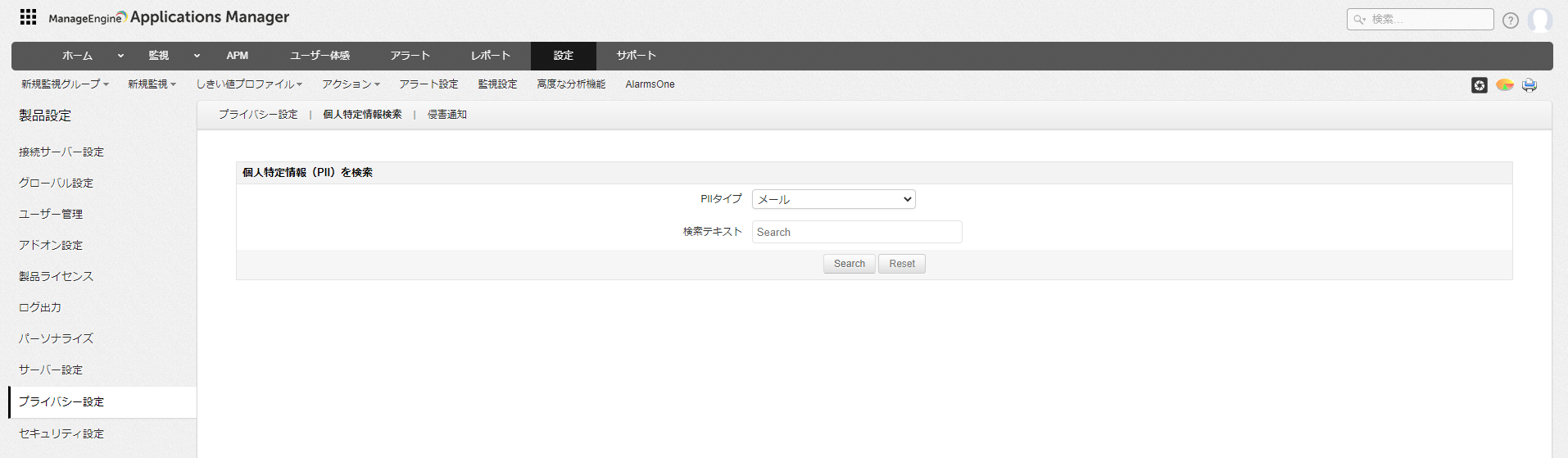 Applications Managerの各モジュールで保存、設定されているPII(Personality Identifiable Information:個人情報)を検索して特定します。
