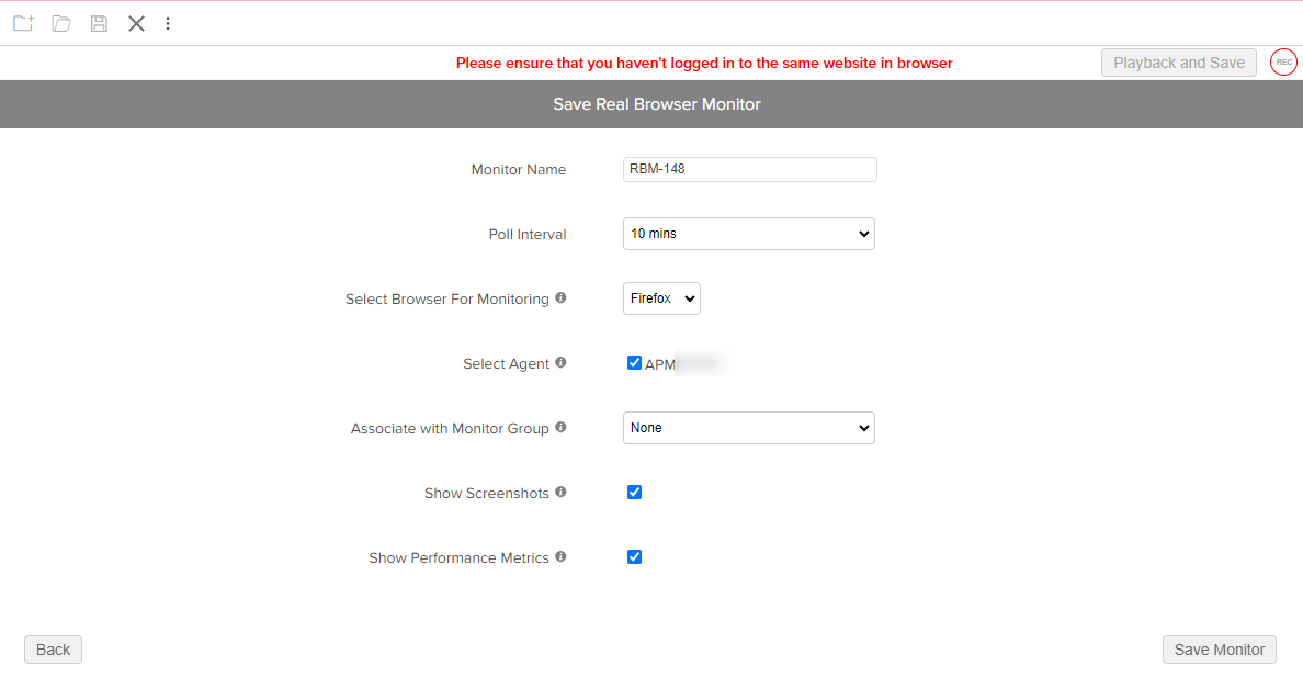 - [Playback and Save]をクリックして、監視作成の手順に進みます。