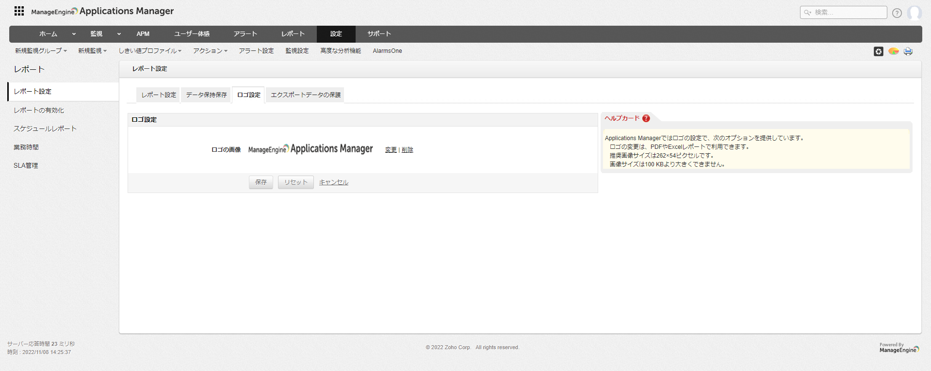 ・ロゴは、PDFやExcel形式のレポートに反映されます。