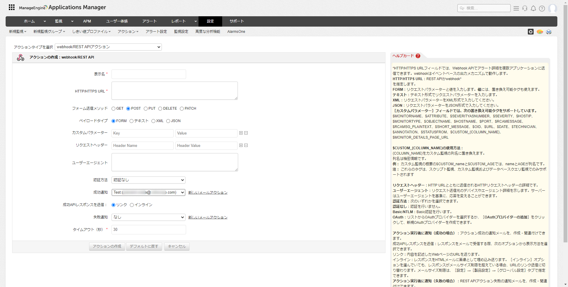 WebhooK/REST APIアクションでは、設定したURLを通じてサードパーティのアプリケーションと通信し、アラートの詳細を送信します。
