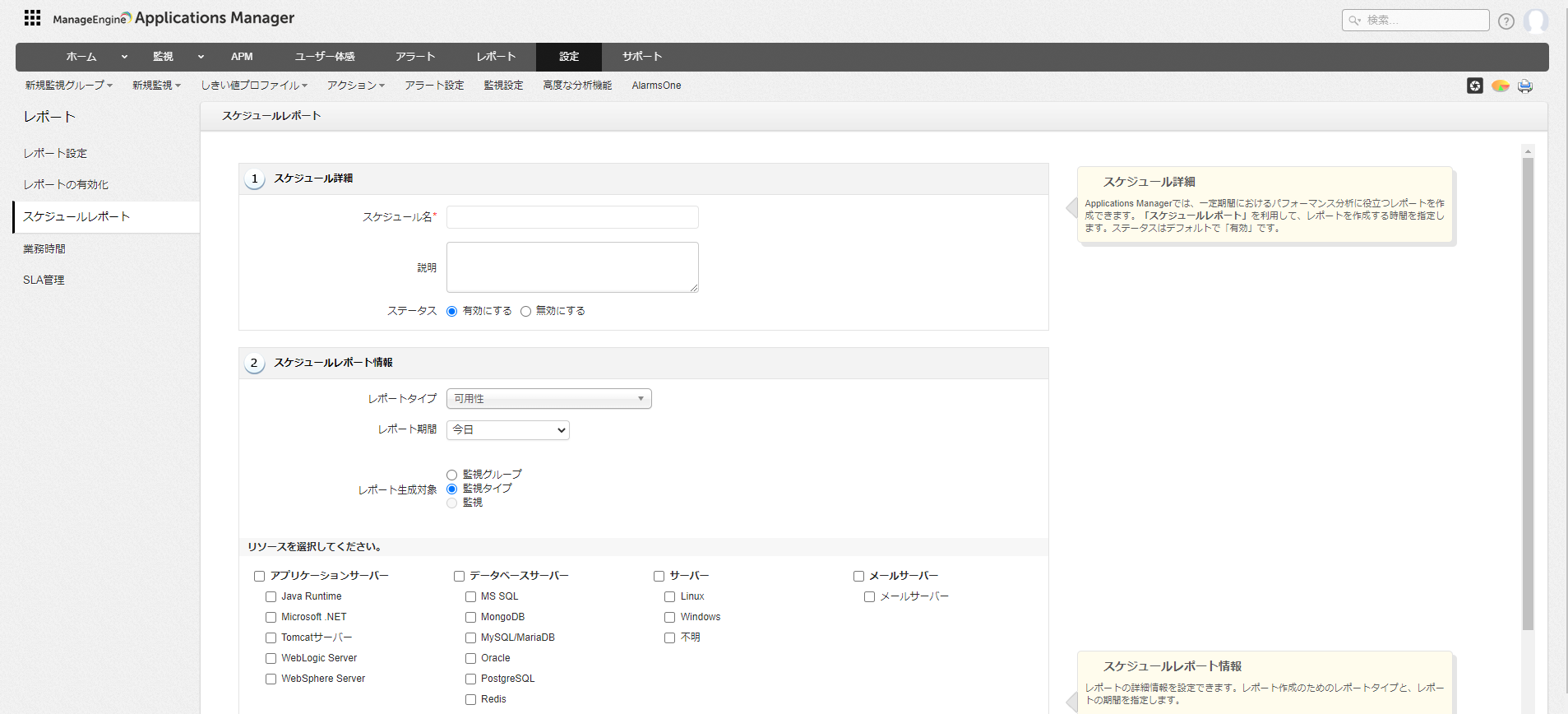 Applications Managerには、定期的に特定のレポートタイプを出力するスケジュール機能が実装されています。