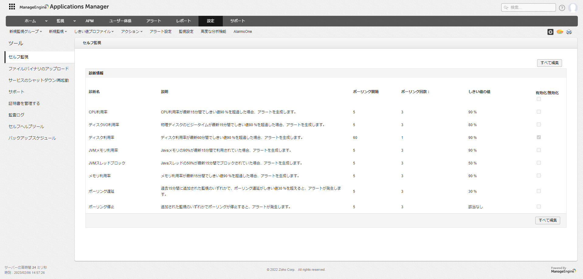 セルフ監視では、Applications Manager自体の正常性とパフォーマンスを維持するために、 インストールサーバー自体を監視します。