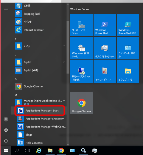 - [スタート]をクリックし、ManageEngine Applications Manager (ビルドの頭2桁) → Applications Manager Startに移動