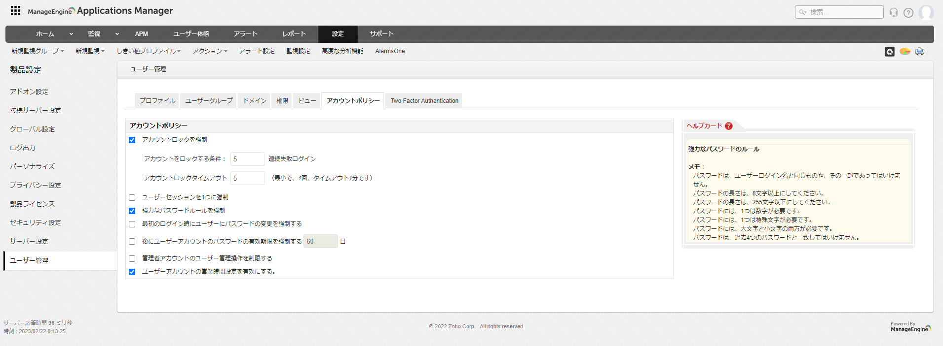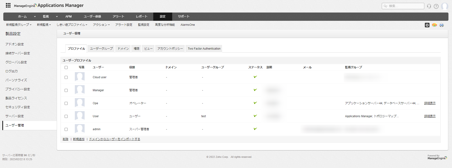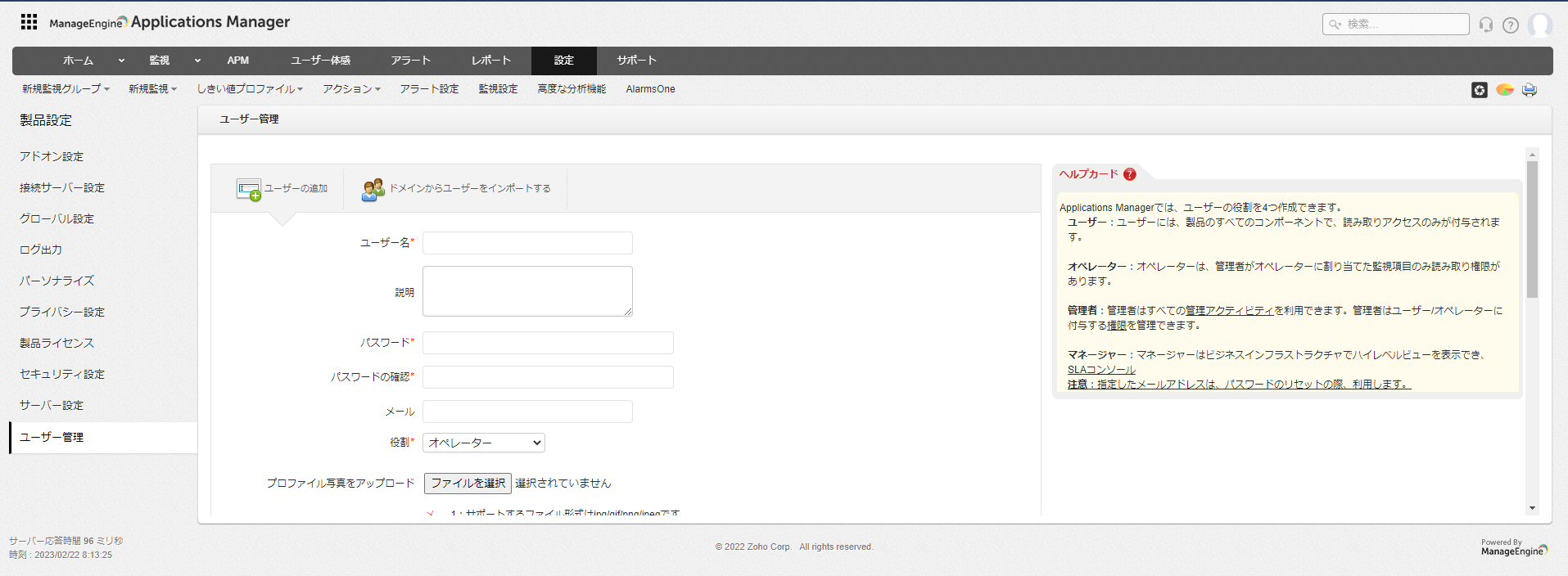 ユーザー管理機能では、Applications Managerで作成/利用可能なユーザーアカウント設定について記載します。