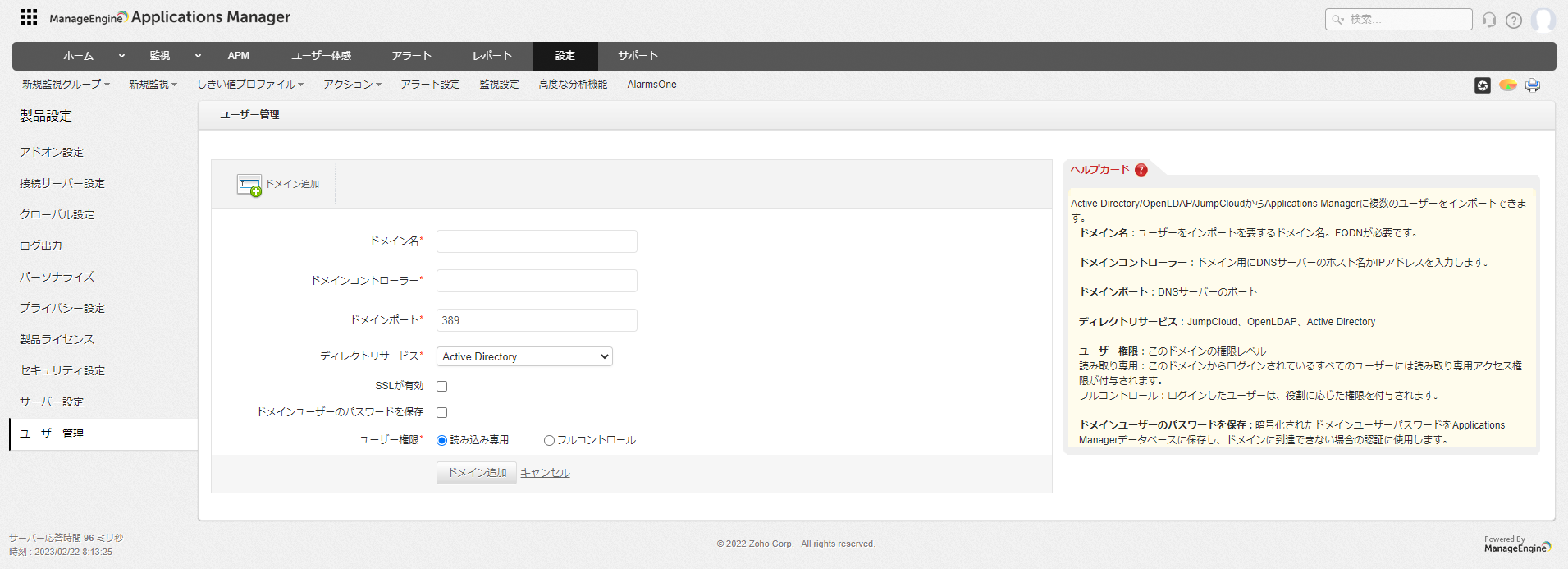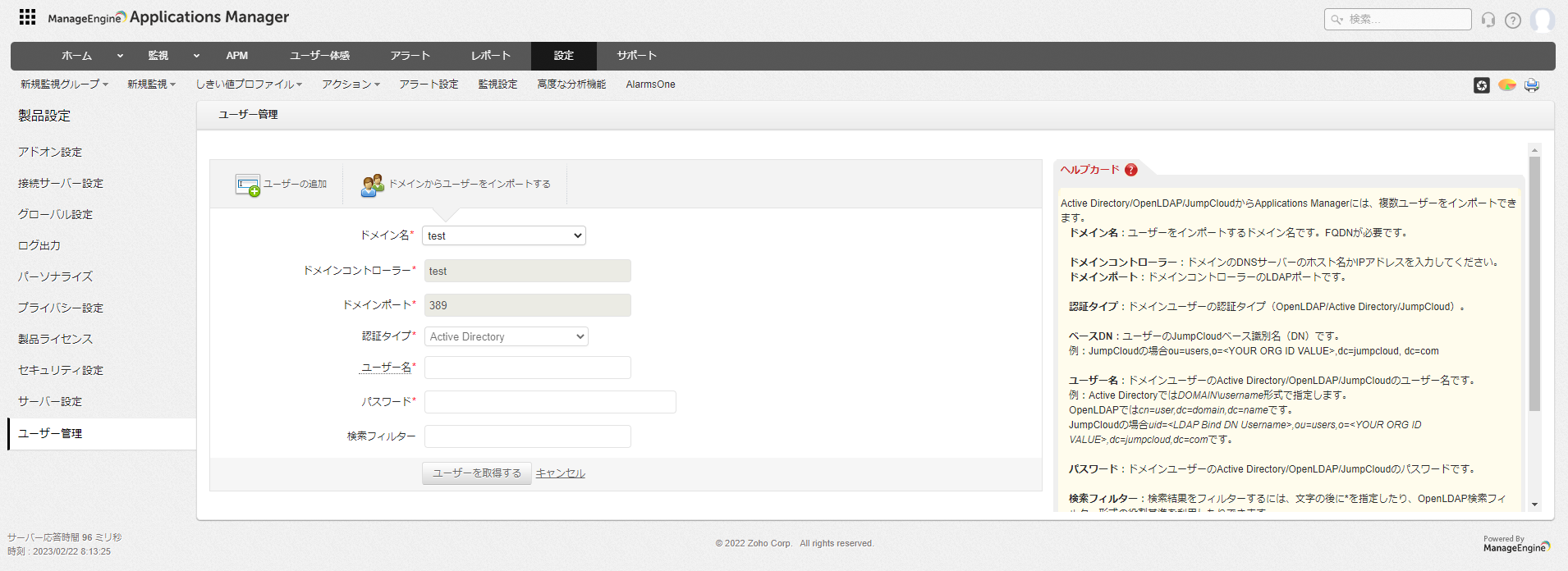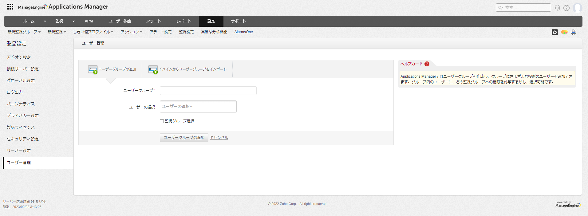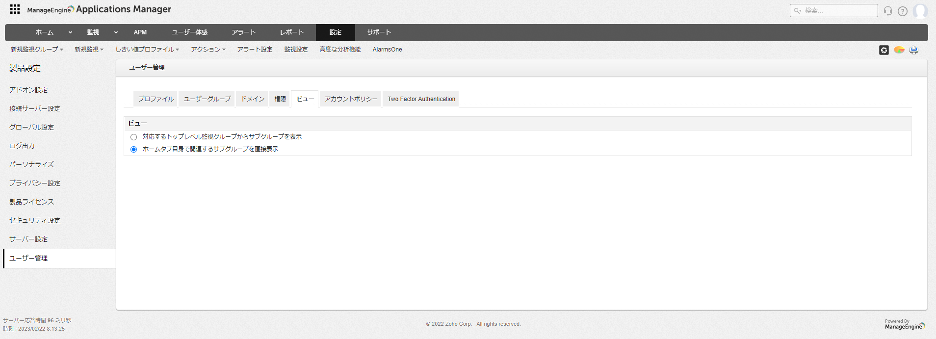 ユーザー管理機能では、Applications Managerで作成/利用可能なユーザーアカウント設定について記載します。
