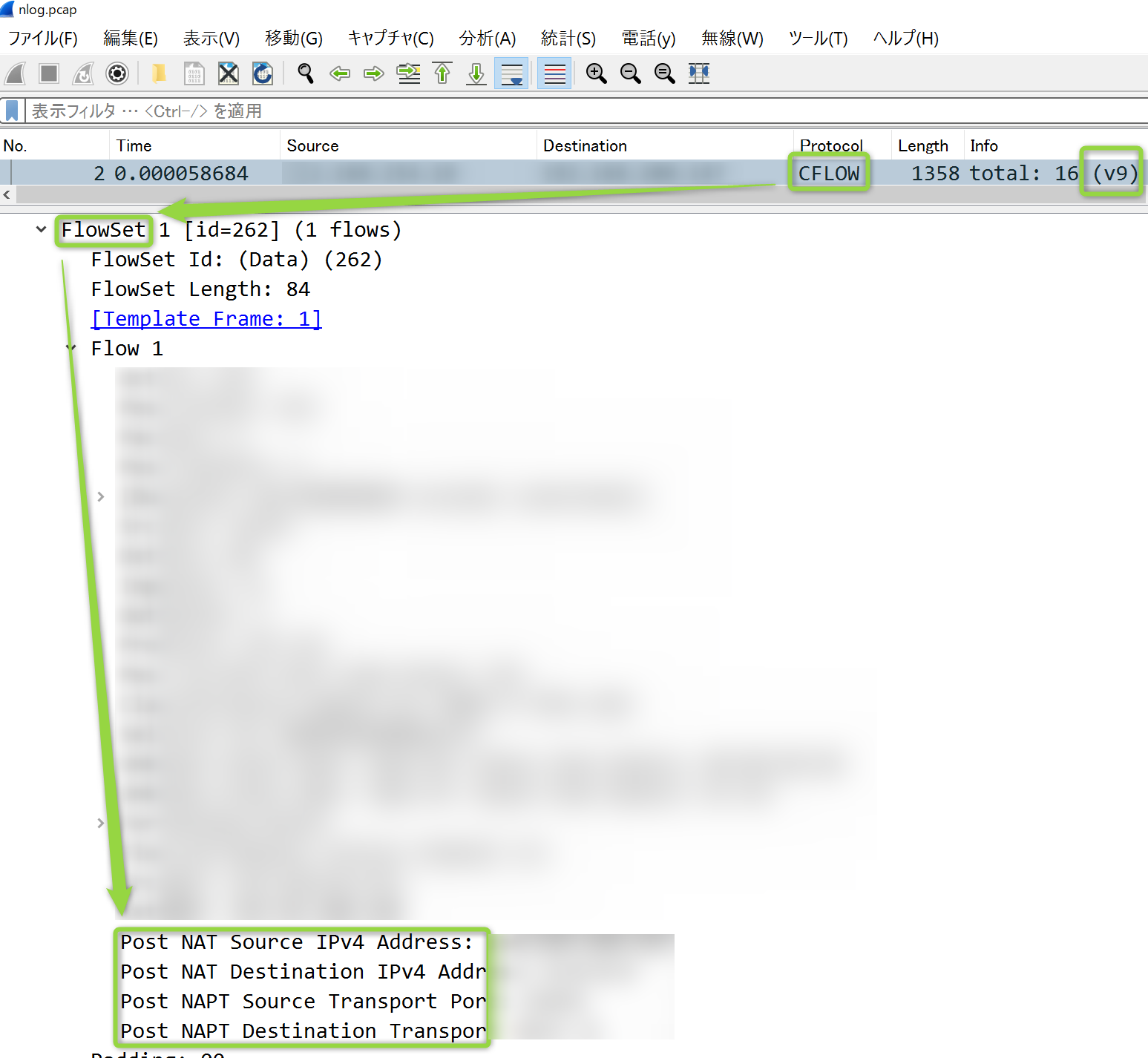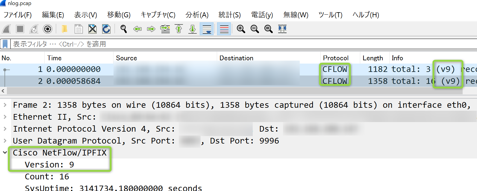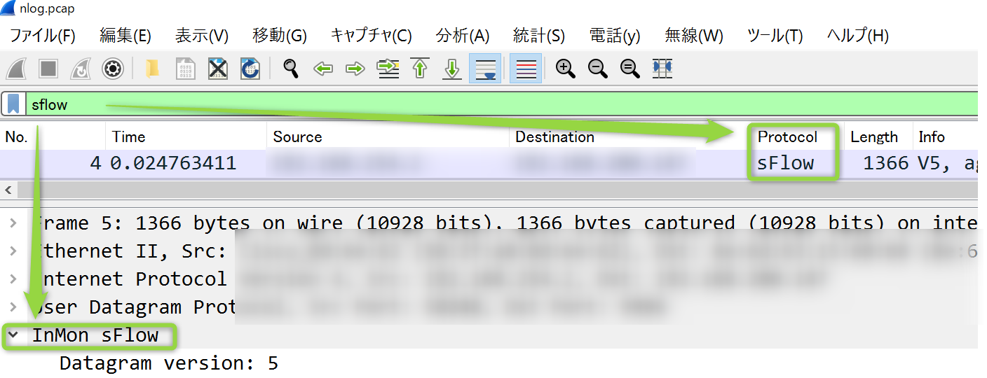 例えば sFlow / NetFlow v5,v9 はフローデータに含まれるProtocolやVersion情報を、NSELはCFLOW(NetFlow)データのうちNAT/NAPTフィールドを参照します。