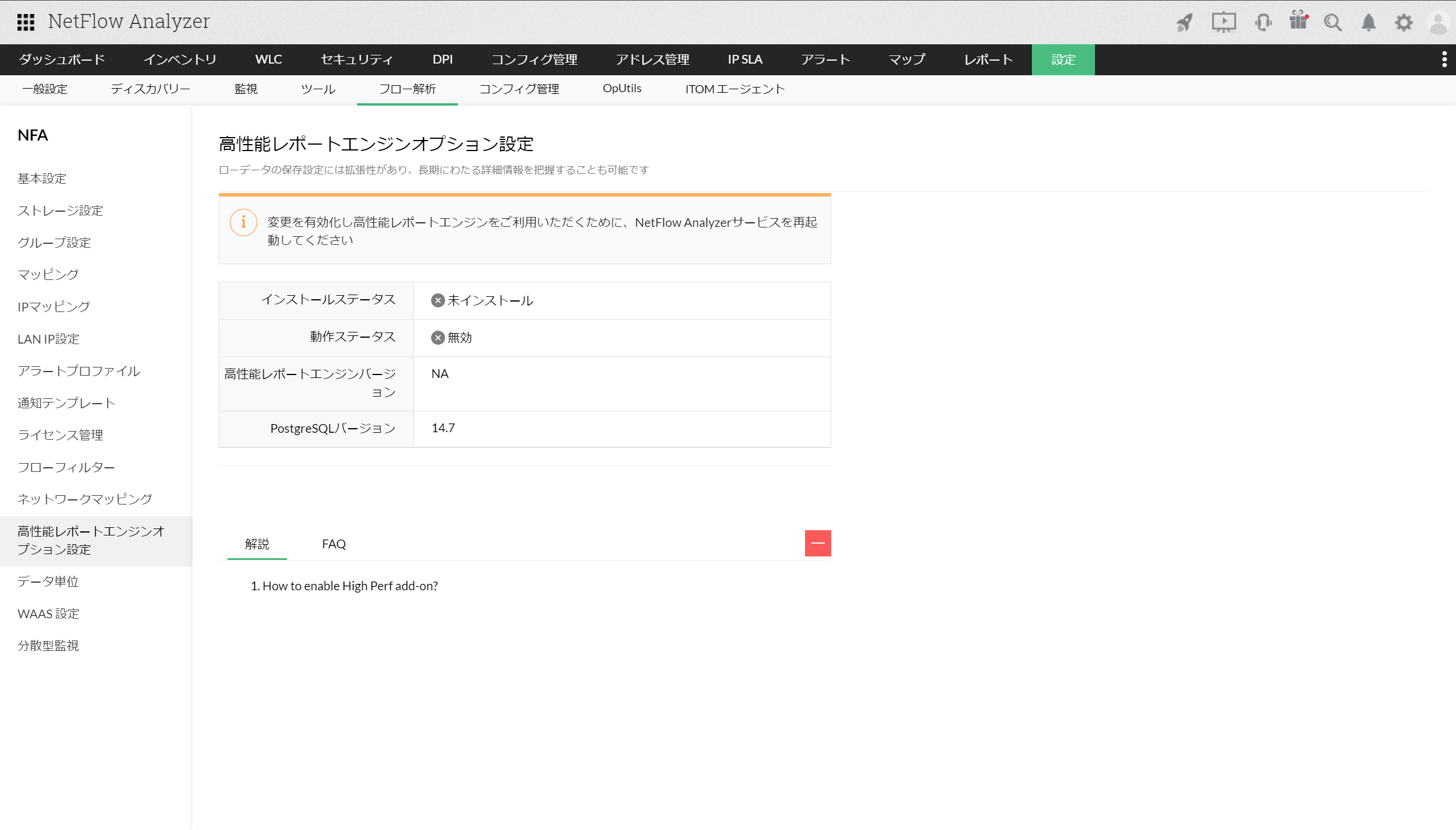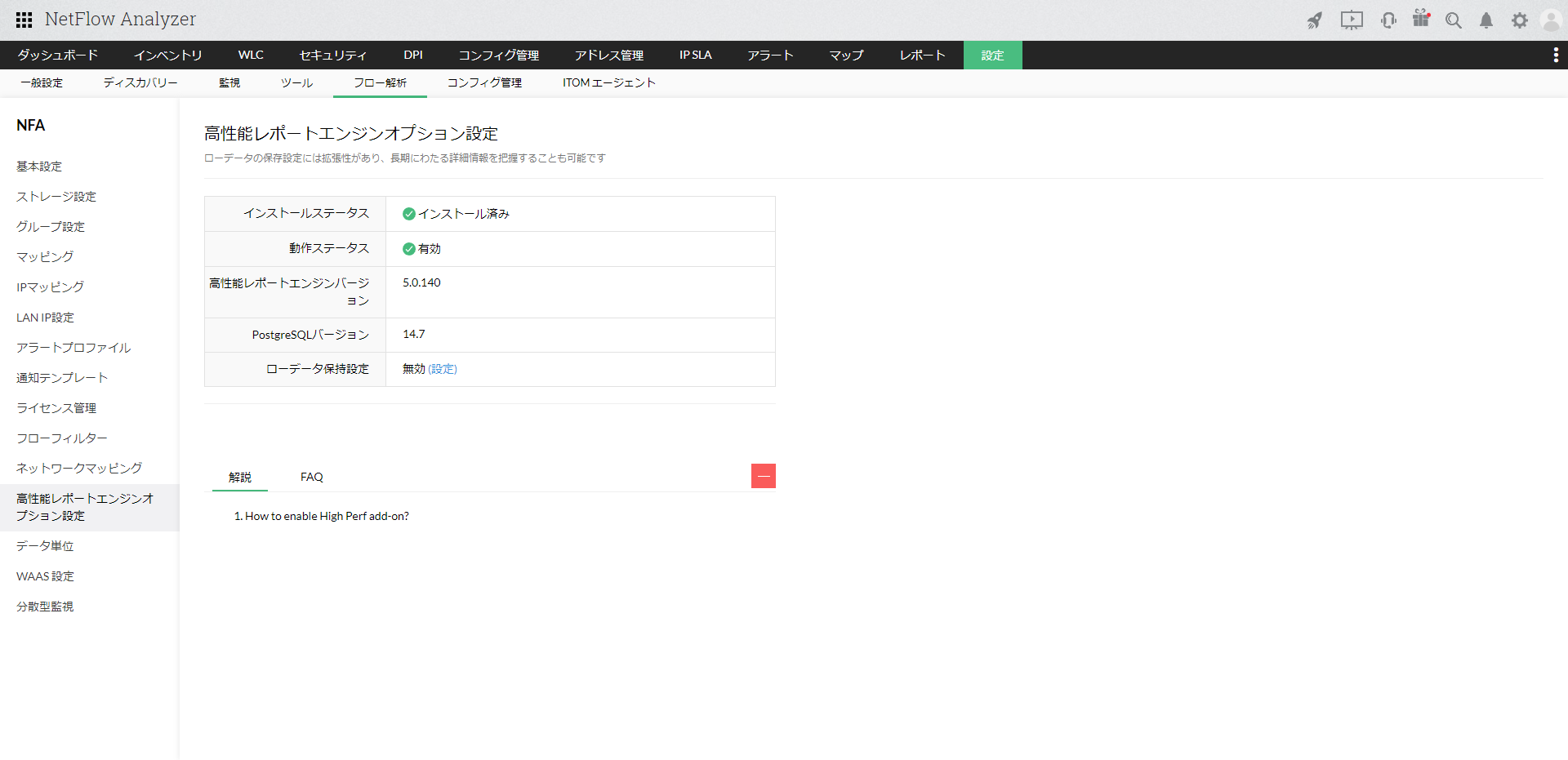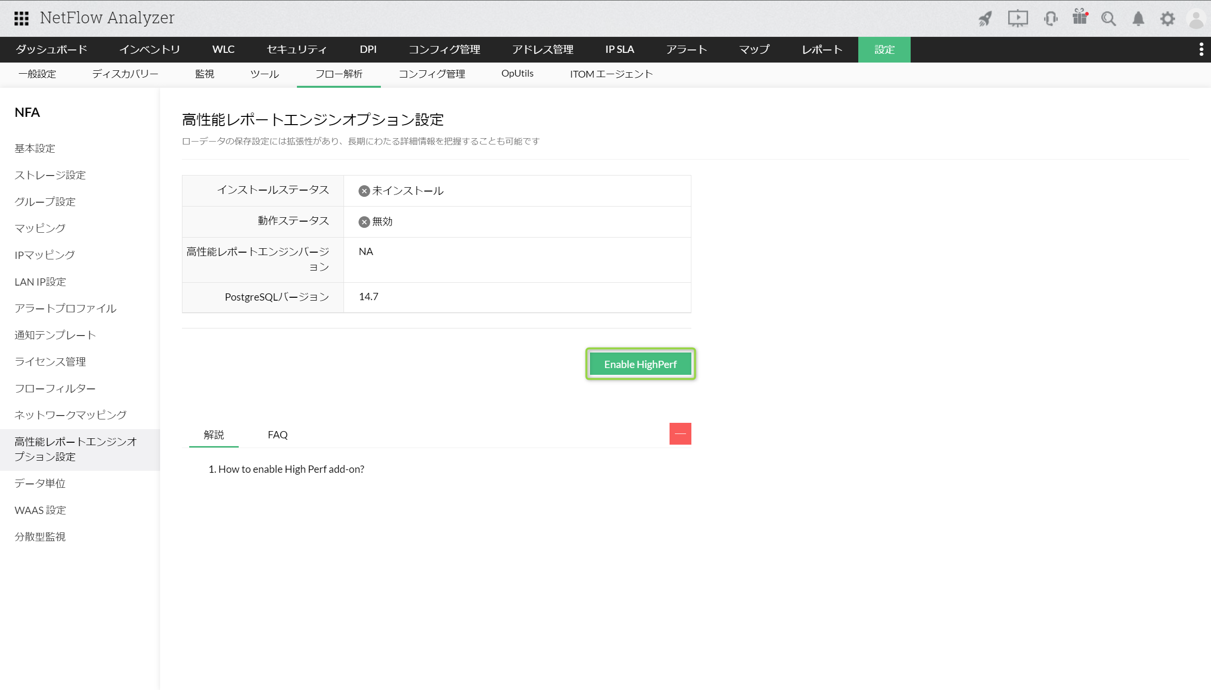 [設定]→[フロー解析]→[高性能レポートエンジン設定]