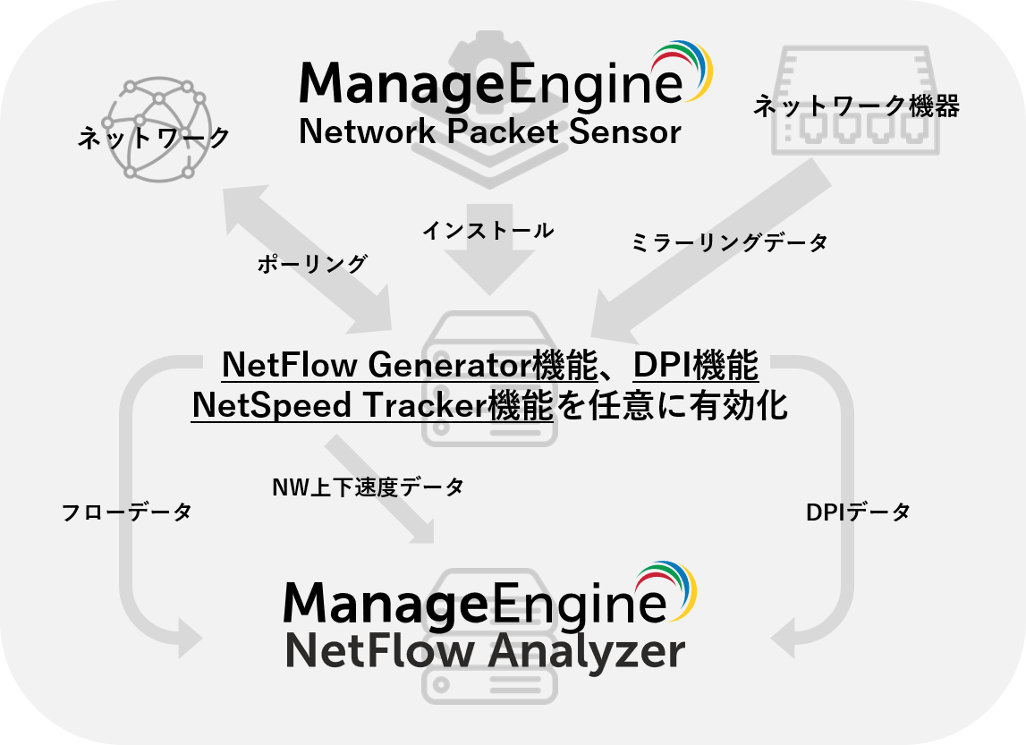※DPI/NetFlow Generator/NetSpeed Trackerのうちいずれか一つ、いずれか二つ、もしくは全機能を有効化可能