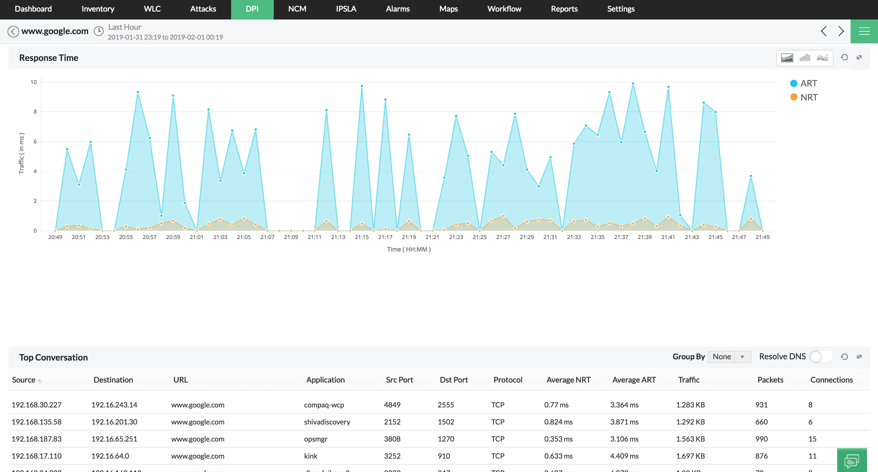 DPI(Deep Packet Inspection)は、アプリケーション通信におけるレスポンスタイムを分析する技術です。