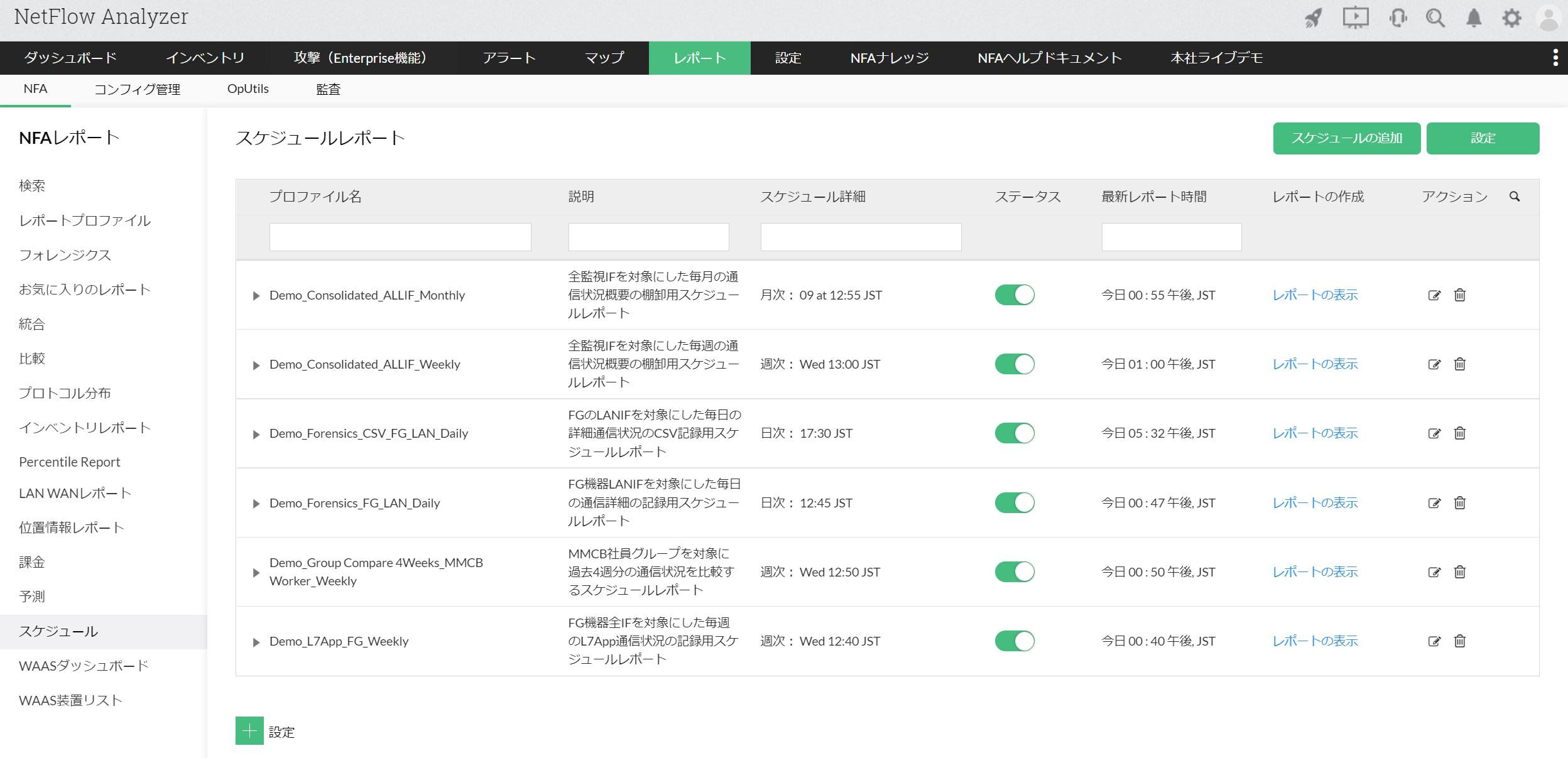 | 最新レポート時間 | 作成スケジュールが最後に実行された日時が表示されます。