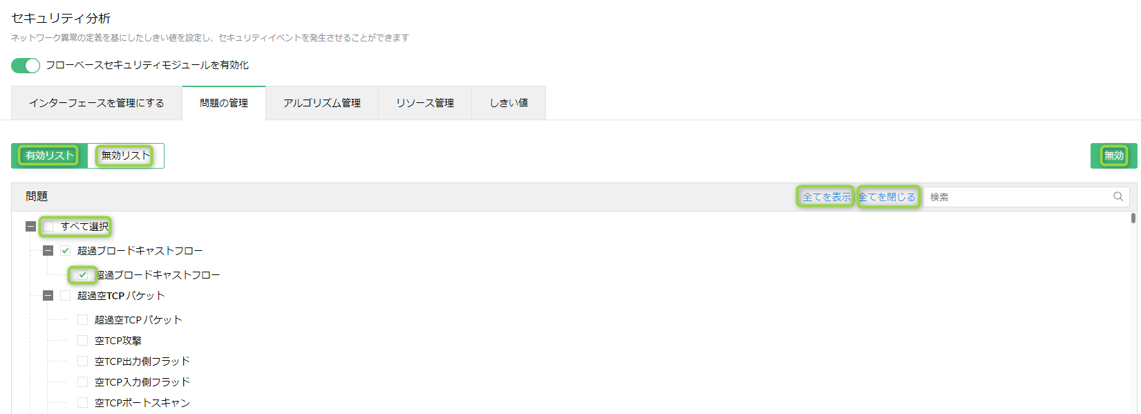 [フローベースセキュリティモジュールを有効化]を有効化(緑の状態)いただき、監視を開始してください。